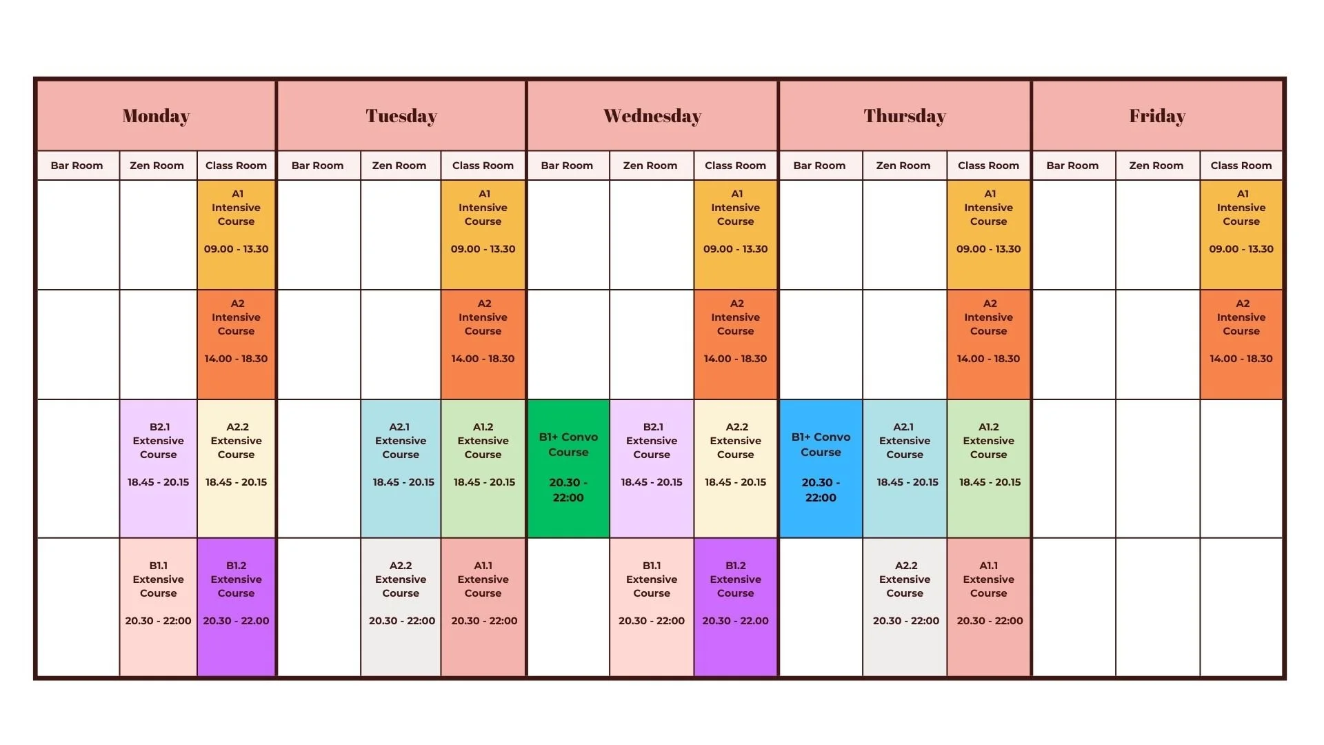 The class timetable is subject to change.